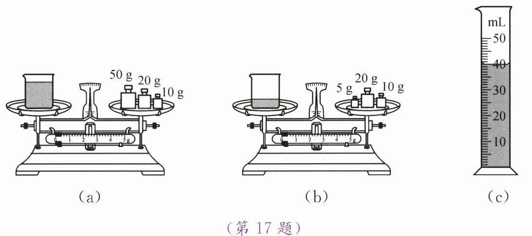 答案:17. (1) ③②① 45 40 1.125×10³ (2) 能 ρ_{醋}=ρ_{水}$\frac{h_{1}}{h_{2}}$