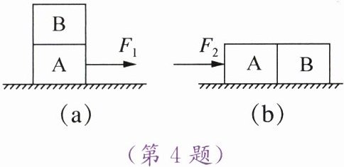 4. 如图(a)所示,完全相同的木块 $ A $、$ B $ 叠放在水平桌面上,在 $ 12 \, \mathrm{N} $ 的水平拉力 $ F_{1} $ 的作用下,木块 $ A $、$ B $ 一起做匀速直线运动,此时木块 $ B $ 所受的摩擦力为