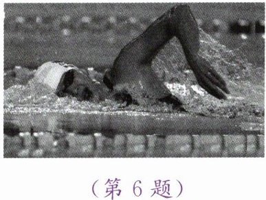 6. 如图所示,游泳时手和脚向后划水,人会向前运动。推动人向前运动的力的施力物体是