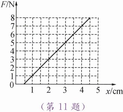 11. 在探究弹簧的伸长量与拉力关系的实验中,先将弹簧水平放置并测出其原长,然后将它竖直悬挂使其自然下垂,并在其下端竖直向下施加拉力 $ F $。实验过程是在弹簧的弹性限度内进行的,根据记录的拉力 $ F $ 与弹簧的伸长量 $ x $ 绘出的 $ F - x $ 图像如图所示。由图可知,(