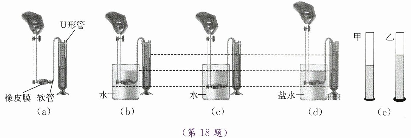 答案:18. (1)取下软管重新安装 (2)深度 (3)BC (4)倾斜 液面与细玻璃管甲中的液面相平