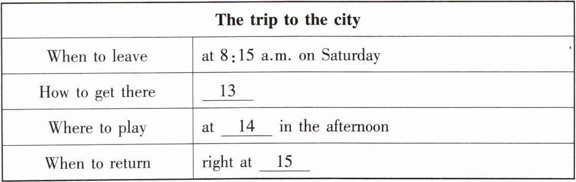 听第一篇短文,回答第13至15小题。请根据短文内容,选择正确答案,完成信息记录表。