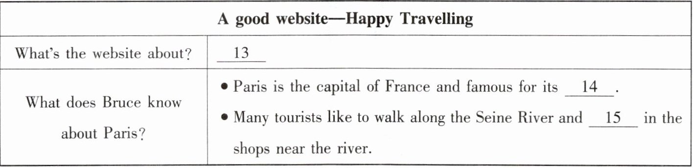 听第一篇短文,回答第13至15小题。请根据短文内容,选择正确答案,完成信息记录表。