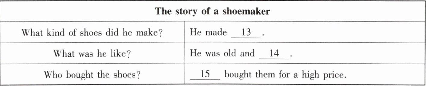听第一篇短文,回答第13至15小题。请根据短文内容,选择正确答案,完成信息记录表。