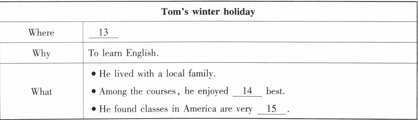 听第一篇短文,回答第 13 至 15 小题。请根据短文内容,选择正确答案,完成信息记录表。