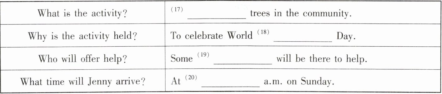 第三部分 听对话,完成表格