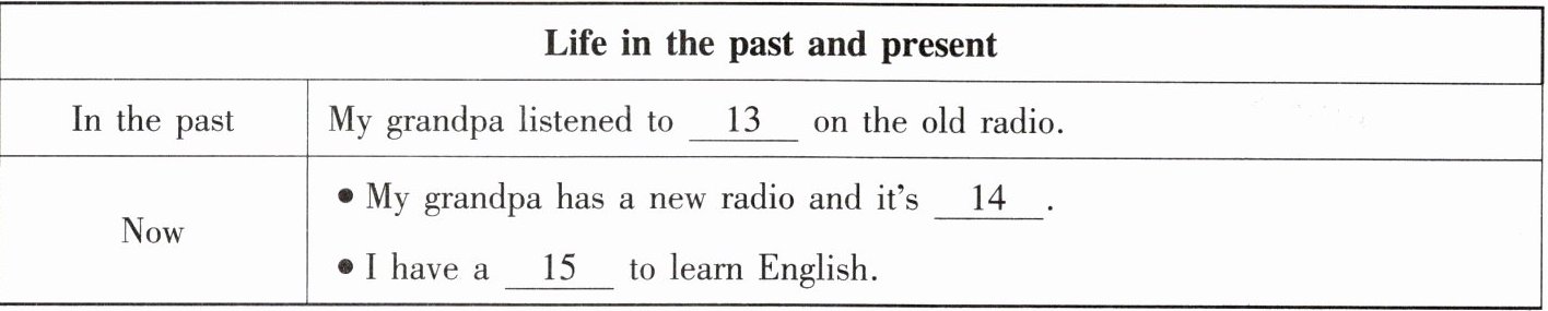 听第一篇短文,回答第13至15小题。请根据短文内容,选择正确答案,完成信息记录表。