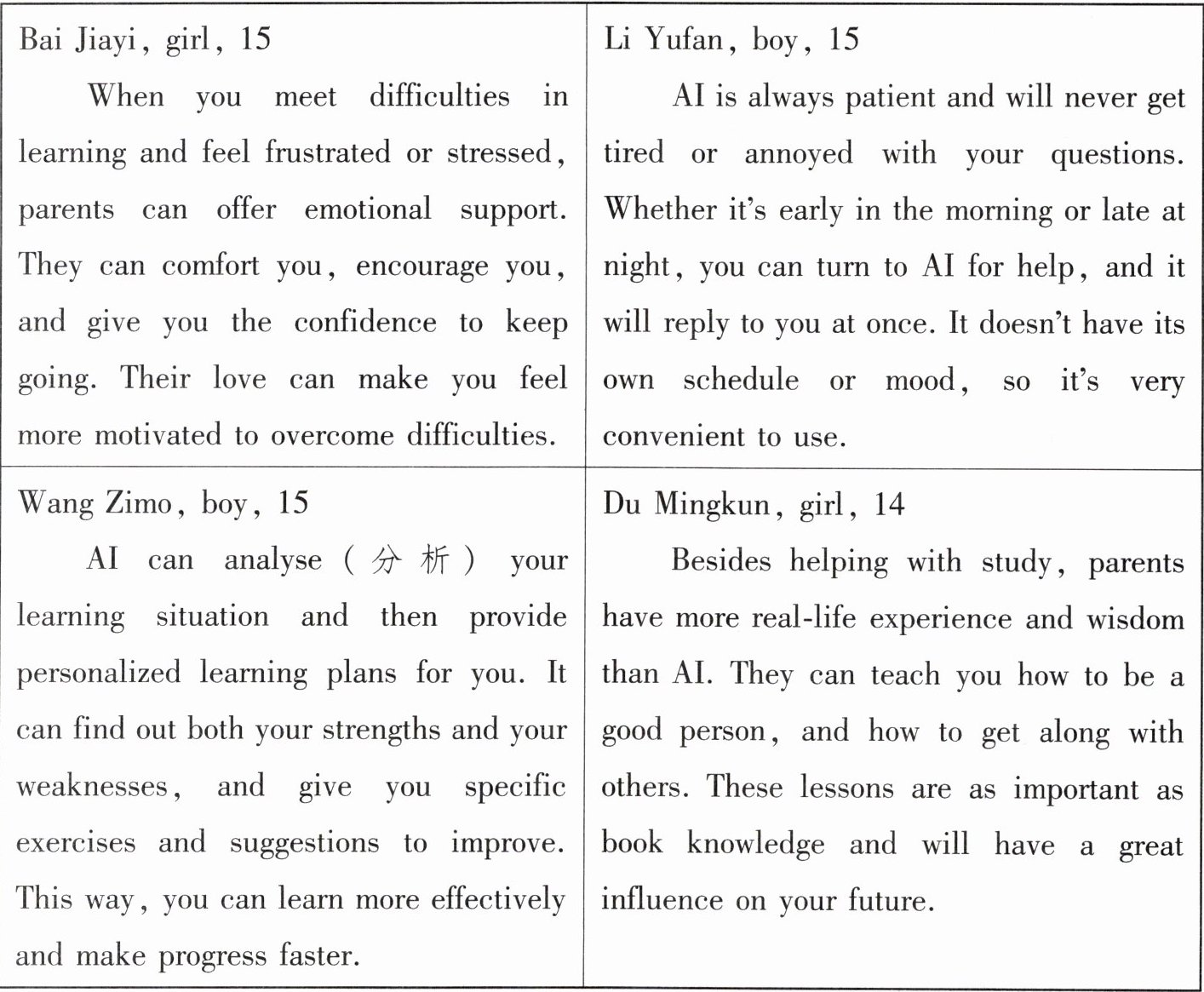 4. Why does Du Mingkun think parents are better than AI?