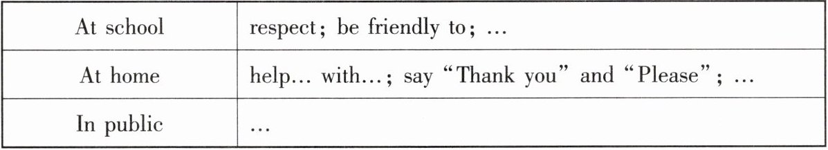 At home, we need to help parents with housework and remember to say “Thank you” and “Please” often.