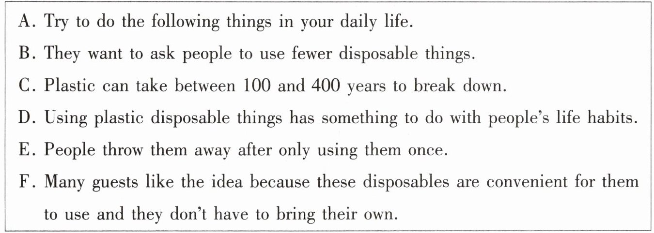 Do you often travel? Do you often stay in a hotel? Many hotels often provide guests with disposable(一次性的) things, like toothbrushes, toothpaste, shampoo and slippers. (1)