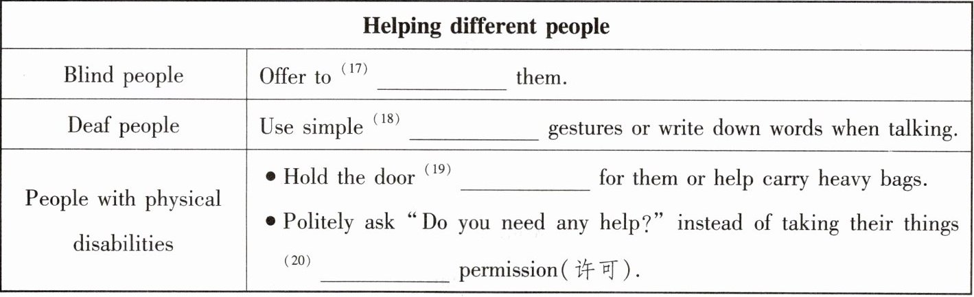 答案:17. guide 18. hand 19. open 20. without