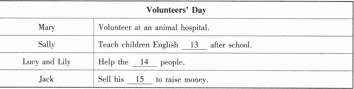 听第一篇短文,回答第13至15小题。请根据短文内容,选择正确答案,完成信息记录表。