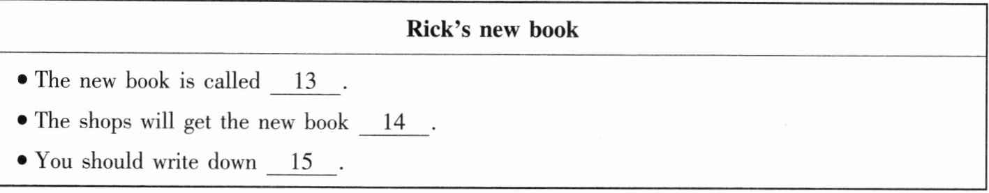 听第一篇短文,回答第13至15小题。请根据短文内容,选择正确答案,完成信息记录表。