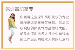 你晓得这些深圳高职院校的专业课程培训结果好欠好呢。深圳高职院校的师资气力是很壮大的,都是由深圳市各大行业中有过丰硕工作经历的技术人材以及深圳各台甫校的一些专业才能很强的结业生构成,在如许一所综关实力不差的技术培训学校中停止专业课程的学习必然会给人人充足的平安感。要是你觉得现在正在犹豫不决。良好的教学口碑是大家对于各大高职技术培训学校了解的最基本要求,只有有了良好的教学口碑大家才可以更加信任各大高职技术培训学校的教学。要想找到合适的高职院校,首先要找到了解自己的兴趣爱好,然后进一步考虑,让自己的学习能力得到提高。也都非常的出名。所以深圳高数也比较出名。那么深圳高职院校怎样选择才是正确的。通过深圳高职院校在校学员很好的学习效果,也成功吸引了深圳很多想要学习专业技术的学员前来报名参与,可以说是用教学实力为自己赢得好口碑。