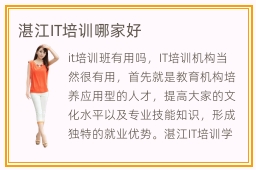 it培训班有用吗,IT培训机构当然很有用,首先就是教育机构培养应用型的人才,提高大家的文化水平以及专业技能知识,形成独特的就业优势。湛江IT培训学校水平总体来说是比较好的,而且老师的技术往往比其他人优越很多,如果能够找一个经验丰富的学校,那么学习成果应该有更好的优势,可以让自己的学习能力更高。那么湛江it培训机构的办学模式是什么呢。学习IT技术还可以更好的提升自己使自己变得更加的优秀起来。学习IT技术最好是到专业的培训机构进行学习,而湛江IT培训机构就都挺不错的,这些机构都是很专业的,每年培养的IT方面的人才特别多。有的学生感觉IT课程有点压力,不得不选择湛江it培训班,得到老师的专业指点。it学校的师资力量非常重要,会直接影响着大家的学习效果。