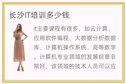 it主要课程有很多,如云计算、应用软件编程、大数据分析数据库、计算机操作系统、高等数学。计算机专业领域的发展前景非常好,该领域的技术人员可以应聘软件开发工程师,嵌入式软件运营工程师,网络通信系统管理人员,信息系统管理工程师等职业。为了学习计算机的内容,学生可以考虑专业辅导班的帮助,由专业老师深入浅出为自己制定课程,明确指导思想,从而巩固知识结构,提高学习效率。越来越多喜欢学习电脑技术。北京建立于2005年,具有经历丰硕的教员,毕生推荐就业,这里会成绩你胡想。这种方式能够让学生快速成为实战型人才。有些学校确实很重视学习氛围的营造,希望学生能够相互学习、相互交流,提高学习应用水平,也能养成团队合作的精神。