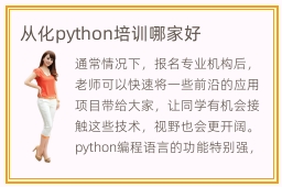 通常情况下,报名专业机构后,老师可以快速将一些前沿的应用项目带给大家,让同学有机会接触这些技术,视野也会更开阔。python编程语言的功能特别强,可以用于好很多的范围,只不过有些同学并不是很理解,或者没有重视应用,学习过程容易陷入困境,工作优势也无法体现。python专业机构有很多细致的教学内容,如果学生希望完善这些专业方面的知识结构,改善个人的学习水平和应用实力,都可以重点关注水平比较高的从化python培训学校,找到自己需要的课程。python应用到底有哪些,主要的应用有网络工程、软件设计、网络优化、计算机操作系统等等,要求比较多,但是都有很好的发展前景。学生如果通过自己的尝试,仍然看不到成果,而且会遗漏掉很多内容,那么可选择Python培训机构,老师会找到很多优质的应用方案,让学生可以更加快速了解这些知识的结构和应用的领域,也能够解决各种知识结构的难点和瓶颈。