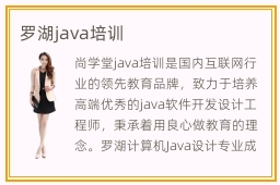 尚学堂java培训是国内互联网行业的领先教育品牌,致力于培养高端优秀的java软件开发设计工程师,秉承着用良心做教育的理念。罗湖计算机Java设计专业成长潜力照旧很大,罗湖地域计算机技术Java技术成长有一个不变的成长趋向。学习java最常见的方式就是自学和进入培训班,它们各有优势劣势的。但是不管选择哪些培训班,大家要有为关心工作技能以及专业特色、培训的标准等等,如果发现这些机构的应用能力不强,或者是培训的特色不够鲜明,那么可能这些机构就很难满足学生对专业的要求。Java语言编程设计是具有一定学习门槛的,需要具备冷静分析问题的能力以及清晰的逻辑思维能力等。但是计算机专业的学习费用是比较高的,固然这也是与将来的就业工作薪资待遇成反比的,关于学费这方面家长们需要挑前做好意理准备。