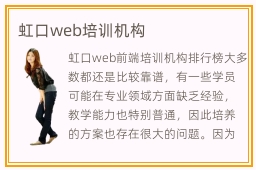 虹口web前端培训机构排行榜大多数都还是比较靠谱,有一些学员可能在专业领域方面缺乏经验,教学能力也特别普通,因此培养的方案也存在很大的问题。因为虹口web前端培训技术非常的先进。虹口web前端培训机构报价表主要看web前端培训成果以及技术能力、培训内容等等。web前端技术是非常有专业性的技术,而目前最火的技术就是web前端技术。大家不要盲目追求效率,还要确定好自己的目标,一层层进行思考,达到工作的标准,实现更多的突破。Web培训专业机构可改善学生的学习方法,也可提供优越的学习经验,虽然说很多学生才刚刚接触这些先进的课程领域,但是有老师专业指导之后,这些学生的学习成果会有保障。另一方面也可以使同学学习更有动力。