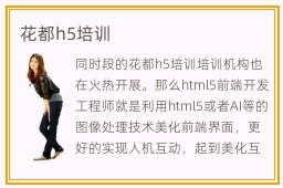 同时段的花都h5培训培训机构也在火热开展。那么html5前端开发工程师就是利用html5或者AI等的图像处理技术美化前端界面,更好的实现人机互动,起到美化互联网的作用。那要怎么能快速的学习这些内容。在这样的培训机构里学习,一定是高效的,与同学互相交流学习心得,互相探讨学习中遇到的问题,积极调动学生对于html5的学习热情,这样的学习是事半功倍的,培训机构互联网培训公司等你来。这是现在的一种流行趋势,只有学习了这门专业才可以更好的提升自己。花都h5培训这块也发展的很快,这所美丽的冰雪城市已经逐渐由原本的工业城市慢慢转型。在花都html5培训,可以学到非常专业性的知识和技术。当然学生要多关注各种学习的技巧和方式,而且应该持之以恒,充分利用好这些时间,改善应用的成绩,巩固理论知识。
