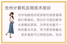 沧州计算机应用技术培训