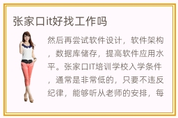 然后再尝试软件设计,软件架构,数据库储存,提高软件应用水平。张家口IT培训学校入学条件,通常是非常低的,只要不违反纪律,能够听从老师的安排,每天都要完成学习任务,相信会是培训学校非常欢迎的学生。IT专业近几年来是受欢迎的专业类型,未来可以预测的是以后的发展速度也会越来越快,有大量的人才都会融入到这些IT专业领域当中,所以大家也不要掉以轻心,面对如此强劲的竞争环境状态,应该要懂得去优化IT的知识技能,提高竞争力,那么不管在什么时候都不会担心丢失工作。it行业的竞争压力一般都比较大,主要就是因为行业发展速度很快,技术越来越复杂,如果学生没有良好的学习态度,也没有精细的学习方向,容易处于很被动的竞争局面。