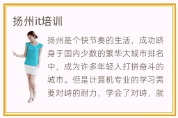 扬州是个快节奏的生活,成功跻身于国内少数的繁华大城市排名中,成为许多年轻人打拼奋斗的城市。但是计算机专业的学习需要对峙的耐力,学会了对峙,就离成为一位优异的计算机专业技术精英职员的胡想,又近了一步。扬州计算机行业成长空间怎么样。扬州IT培训学校不但重视关于学生们计算机专业基础实际常识的培训,更重视的是关于学生们的计算机实践操纵才能。不同的计算机培训学校有着不同的专业教学团队,不同的教学团队在教学方式方面也是有区别的,只有找对了适合自己的学习方式才能将计算机相关专业的学习效果最大化。我想这是很多对于计算机专业前景不太了解,或者是对于扬州IT培训学校不太了解的学生,最关心的问题吧,因为这将直接影响学员们毕业后的就业问题,将影响学生们的就业薪资待遇。