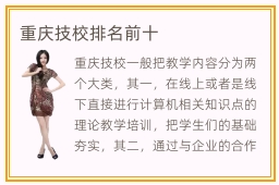 重庆技校一般把教学内容分为两个大类,其一,在线上或者是线下直接进行计算机相关知识点的理论教学培训,把学生们的基础夯实,其二,通过与企业的合作沟通和交流,打造一所专业的技术培训平台,拓展学生实践实际能力。怎么样能力学好专业技术呢。重庆技校主要是采取一对一、点对点的教学模式,根据学员们能力基础的不同进行因材施教。现在好多在重庆技校学习过得学生都在自己的工作岗位中认真工作者。如果学生的水平不够高或者是压力太大,容易面临着失业的风险。,人人可以斟酌一下重庆技校的周末挑升培训班,这个培训班开课时间一般是周末,总的来讲还是很合适上班族停止专业挑升的。重庆技校望文生义便是以专业技术人材的培训为眼的的学校,在重庆技校同窗们可以学习到各类百般的专业技术,只要要随着重庆技校的培训形式当真学习便可以在短时间内获得很好的学习结果。