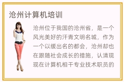 沧州位于我国的沧州省,是一个风光美好的汗青文明名城,作为一个以缓出名的都会,沧州却也在跟随社会成长的措施,认清现现在计算机相干专业技术职员的成长前景广漠,逐步开始挑高关于计算机相干专业技术人材的培育认识,建立了愈来愈多的沧州计算机学校。很多人在这里都学到了关于计算机技术的专业知识。沧州计算机培训排名也将成为泛博沧州市平易近选择学习的it培训学校的一个主要参考根据。而且学习过程中要尝试多一点应用,不要只停留在书本的角度,可适当参加实践项目,提升实践应用能力,改善专业知识的运用水准。沧州电脑计算机培训学费贵不贵。那么沧州计算机培训学校要不要读。沧州沧州本便是一个存在比较大成长潜力的都会,以是,天然把都会的成长重心转移到计算机科学技术的奇迹下去。