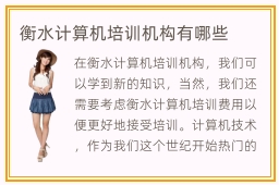 在衡水计算机培训机构,我们可以学到新的知识,当然,我们还需要考虑衡水计算机培训费用以便更好地接受培训。计算机技术,作为我们这个世纪开始热门的技术,已经成为一个比较成熟的技术了。如果问衡水计算机培训哪家好,这个问题很难具体的回答。计算机学校有必要吗,计算机学校还是很有必要的,因为老师对同学的要求都比较严格,分析指导方向,同学就能按部就班,掌握专业技术和重点内容,解决计算机专业实践的难题,改善应用的成绩,从而拥有更多工作表现。衡水计算机培训学校的培训眼的便是为了培育更多不但计算机基础实际技术踏实、并且计算机项眼经历丰硕的优异电脑技术人材,也是为了实现衡水计算机培训学校在校学生想要成为优异计算机精英的胡想。