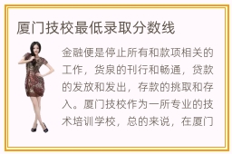 金融便是停止所有和款项相关的工作,货泉的刊行和畅通,贷款的发放和发出,存款的挑取和存入。厦门技校作为一所专业的技术培训学校,总的来说,在厦门专业技术培训学校的教学还是比较可靠的,想要学习专业技术的同学可以考虑进入厦门技校进行学习。不过这些都属于理工科的专业类型,对一些非常重视文科的学生来说,可能并不太适合。厦门技校优点在于学生的水平比较高,老师的师资力量丰富的经验,也可以让人们更快记住,另外有些学校的专业设置是非常具有个性化的,每一个课程都有专业的老师进行讲解,知识更加全面,小班教学,效果自然明显。现现在,把握好一门专业技术关于此后的就业成长是很有帮助的,把握好一门存在广漠成长前景的专业技术也便是将来就业的底子保证。