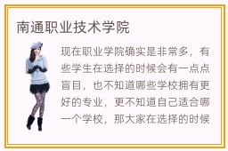 现在职业学院确实是非常多,有些学生在选择的时候会有一点点盲目,也不知道哪些学校拥有更好的专业,更不知道自己适合哪一个学校,那大家在选择的时候不妨了解一下不同学校之间的差异,包括师资队伍方面,专业水平以及软件建设方面等等。前几天有同学提问,什么是南通职业学院呢。其实这种想法是错误的,很多学校都拥有良好的设施,教育水平一直都在提升,拥有更好的教学资源,教学环境不断改善,让学生能够在舒适的环境下保持了良好的学习状态。大家如果觉得高中不是特别理想,那么可以在经过一系列的对比之后,了解一些比较优质的南通职业院校。南通职业学院贵吗,大多数都是在5000元到1万元之间,其实也要看个人选择的专业,有些专业的技术难度比较高,比如金融或者是计算机等等,那么费用可能会贵一点点,但不要只看到费用,还是要多了解自己的兴趣爱好,进行更好的选择。