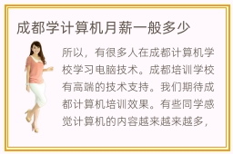 所以,有很多人在成都计算机学校学习电脑技术。成都培训学校有高端的技术支持。我们期待成都计算机培训效果。有些同学感觉计算机的内容越来越来越多,很难了解行业的动态,难免会有些慌张,不得不报名成都计算机学校,由老师指导自己完成更多复杂的技术应用知识,取得更好的成绩。成都电脑培训电脑培训中心理念是什么。而进入一家靠谱的专业计算机培训机构是个提高学习效率、缩短学习时长最好的方式。成都电脑培训班项目活动组织由谁负责开展。很多同学的学习时间都不够多,即便找到非常好的辅导班,也没有办法完成课程项目。而且,成都的电脑技术也在开发中,城市需要电脑方面的人才,并且成都电脑领域工资待遇也是相当不错的。成都计算机学校口碑好,起初建立起来并没有多少家,因此学生对于成都计算机学校的选择相对单一,而如今成都计算机培训机构数量上有大规模地突破,各家计算机学校的培训侧重点也有所不同,这给学生更多选择的空间,也大大增加了选择的难度。