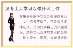 女生高考落榜怎么办都哪些专业,女生高考落榜了,还是有很多种选择,比如找到自己的兴趣爱好,选择自己喜欢的专业的类型,比如设计,画画,或者是金融行业,服务类等等。其实高考落榜也有很多发展的方向,学生要谨慎对比,比如上大专院校、职业学院或者某些知名的教育机构等等,都可以结合自身的弱点,挑选具有前景的专业,发挥自身的潜能。四、培育情味。大家可以看看高考落榜怎办,了解各种未来发展途径,找到自己喜欢的发展道路。如果学校的资源不够多,能力不够强,即便招生门槛再低,都不要考虑。不过因为这些方式的含金量并不是很高,大家要谨慎挑选。高考落榜能干什么比较轻松,高考失利之后,可以选择第二次高考,直到考到名牌大学为止。
