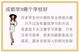 许多学生对计算机专业很感兴趣,只不过没有重视学习的方法,或者是不太注重学习质量,只关注学习效率,很多问题都是走马观花,基本没有深入的研究和探索,导致学习深度不够,很难把专业知识应用到工作上。学IT时间多久,大概在1个月到5个月,但事实上大家的基础状况、学习的兴趣等等都不太一样,时间安排会有一点点变化。所以要看具体学习的是哪类知识。成都IT培训价格可能也只是一个大概,有些课程可能需要花2500元到25000元,但是也有部分机构的课程比较简单的,教育的水平没那么高,因此学习的费用就会下降。有的同学理论不扎实,学习进度非常慢,可以马上和老师沟通,老师一方面有很多经验,可以帮同学解答,另一方面也会制定严格的培训计划,让同学进步更多。