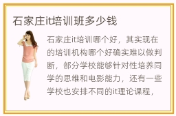 石家庄it培训哪个好,其实现在的培训机构哪个好确实难以做判断,部分学校能够针对性培养同学的思维和电影能力,还有一些学校也安排不同的it理论课程,让大家有更多的选择。这就需要人人选择一所靠谱的专业计算机培训学校停止专业课程的学习,那末,你感觉石家庄IT培训机构是否是一所靠谱的专业计算机培训学校呢。如果学生考虑到选择一家高性价比的石家庄IT培训学校,那么势必要参考一下价格清单。这些专业课程在石家庄IT培训学校的招生专业中都可以找到,因此感兴趣的同学可以去石家庄IT培训学校深入了解一下,以免错过石家庄IT培训学校相关比较靠谱的专业学习平台。it培训班有作用吗,计算机培训不好玩的特点就是师资力量雄厚,老师指定的课程内容丰富,更重要的是课程都十分严谨,每个阶段都有计划。