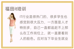 IT行业是很热门的,很多学生也感觉到很大压力,一方面是人才特别多,自己一直都追赶不上那么在工作岗位上,就一直要看别人的脸色。应对当下毕业生就业难这么一个现状,量身定制学习规划和专业的就业指导,让学员高效率的学习专业知识的同时,接受一定的就业指导,可以很大程度上提高学员的就业率。而培训班会强化学生的应用能力,通过多角度的训练,提高大家的操作技能。有很多学生在考虑IT专业辅导班时都会很关心福田IT培训机构排名,总是希望找到比较靠谱的机构,带来更加明显的成绩。此外,也有不少同学没有合理安排自己的学习时间,找不到学习的方案,学习效率也会很低。it培训严格么,IT培训机构当然有严格的课程安排,全方位进行跟踪,每一个阶段都会制定科学的合理的课程和培训计划,使学生深入理解计算机专项项目。