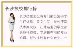长沙技校里设有专门的公寓供学生们休息。望文生义,技校便是技术类院校,在此结业的学生都是身怀特技。学到最有用的专业知识。长沙技校有什么专业,一般是现在非常热门的,比如电子商务,电子计算机,多媒体应用,软件开发,平面设计等等,当然热门的专业往往就意味着竞争压力大,虽然不一定会是高薪的工作,但大家还是要针对自己的实际情况来分析,找到恰当的专业,发掘自己的潜能。据了解,在社会上有广泛好评优秀的长沙技校有:长沙金石技校,长沙人才技工学校,长沙技术学院等。一个学校有没有好的老师,往往会决定着教学的质量,所以很多学校也会特别关注老师的培养,希望能够招揽更多高级富有经验的老师,让学生能够在短时间内吸收更多知识,也可以培养孩子的成长之道。