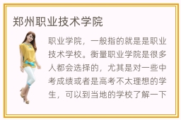 职业学院,一般指的就是是职业技术学校。衡量职业学院是很多人都会选择的,尤其是对一些中考成绩或者是高考不太理想的学生,可以到当地的学校了解一下各种不同专业的教学水平,师资的力量等等,现在很多人都会考虑电子计算机或者是医疗行业等等,那么大家还是要多做对比,考虑自己的兴趣爱好,达到更好的学习效果。还要多关注不同学校的专业排名,如果排名比较靠前,那么学习成果往往会比较优越。职业学院其实是有很多的,因此选择的时候很多学生或者是家长会感到特别困惑。近几年来,我国对于职业教育的投资和重视程度也是越来越大。郑州职业学院随着郑州经济的发展和社会建设的不断完善,发展的越来越好。郑州职业学院口碑好的有哪些,可以找一些教师队伍强盛,管理文化突出,教学模式先进,独树一帜的学校,这些学校往往会更加懂得创新,在众多的高职院校中脱颖而出,具有鲜明的特点。