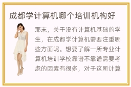 那末,关于没有计算机基础的学生,在成都学计算机需要注重哪些方面呢。想要了解一所专业计算机培训学校靠谱不靠谱需要考虑的因素有很多,对于这所计算机培训学校的第一印象怎么样,完全来源于这所培训机构的口碑好坏。议决成都计算机培训学校排名可以很便利的领会各大成都计算机培训学校的上风与差势,议决成都计算机培训学校排名也可以顺遂的选择出最合适本身学习的平台。此刻各个地域的计算机专业培训学校都开设了其实不少,那末,该怎样遴选成都计算机学校呢。现在计算机培训行业是非常热门的,很多家长都希望小孩子能够在计算机行业中深耕,提升专业能力,收获更高的薪资水平。大家都知道,成都作为我国的一线城市,在很多方面都是比较优秀的,计算机技术就是其中的一种。