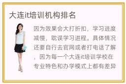因为效果会大打折扣,学习进度减慢,耽误学习进程。具体情况还要自行去官网或者打电话了解,因为每一个大连it培训it培训学校在专业特色和办学模式上都有差异,所以费用的收取是不同的,因此比较不好一概而论。大连it培训班的专业课程特别丰富,而且老师会全程指导和监督,帮助同学制定不同阶段的目标和培训任务,鼓励大家交流和学习,从而获得更多进展。如何正确选择计算机培训学校呢。很多在大连it培训学校培训,过的学员,都找到了不错的工作。他们都喜欢在大连it培训学习。为了实现自己的目标,同学要看清楚行业发展动态,学习工作需要应用到的技能,跟上时代步伐,解决多种应用难题。IT培训机构能力主要看哪个机构的水平以及老师的质量等等,有些老师已经在工作岗位上很多年,提供就业经验和学习经验的指导方法,学生听老师的安排,选择合适IT课程内容,也会得到很多不错的应用指导优势。