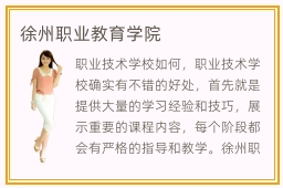 职业技术学校如何,职业技术学校确实有不错的好处,首先就是提供大量的学习经验和技巧,展示重要的课程内容,每个阶段都会有严格的指导和教学。徐州职业学院须知,首先要了解专业的优势,排名的情况,设置的力量,一般优秀的学校都会拥有雄厚的师资力量,具有丰富的经验,如果不是特别了解,可以到当地试一下听课,看看老师的谈吐和经验。职业学校确实受到很多人的重视,尤其是近几年来学生越来越多了,如果在高考没有理想的成绩,可以选择到这些学校学习进修,掌握专业的技能,在未来的找工作过程中也会有不错的优势。其实现在培训学校也有很多专业的技术,教学模式更加新。徐州职业学院值得吗,大多数学校还是比较值得的,有些学校具有丰富的经验,而且设计力量雄厚,设备资源非常先进,如果能选择那些职业学校,那么短时间内也可以发挥很好的优势。
