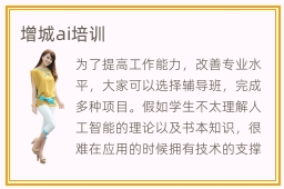 为了提高工作能力,改善专业水平,大家可以选择辅导班,完成多种项目。假如学生不太理解人工智能的理论以及书本知识,很难在应用的时候拥有技术的支撑。人工智能专业越来越热门,每年都有许多计算机学生选择人工智能的方向,也就意味着未来的专业竞争压力会越来越大。增城人工智能培训学费也许只需要花2500元到14500元即可,但是这些课程内容的项目通常都会不一样,因此学员的学习时间安排以及课程难度,学习的费用等等都会有不同。这些AI技术还在高速发展阶段,没有完全饱和,有待研发人员快速创新,消除技术壁垒。增城人工智能培训机构更加注重运用,也会将许多人工智能应用领域的项目和技能展示出来,为学生进行深入的剖析。增城人工智能培训班哪些好,人工智能培训班一方面要考虑老师的水平,另外一方面要了解不同学生的学习氛围。