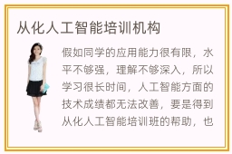 假如同学的应用能力很有限,水平不够强,理解不够深入,所以学习很长时间,人工智能方面的技术成绩都无法改善,要是得到从化人工智能培训班的帮助,也许可以理解更多相关的知识,也能挖掘个人的学习潜力,取得更多进步优势。在培训的过程中拒绝纸上谈兵,分析大量实践案例和重点课程,帮助大家在就业时获得好工作。人工智能比以往更为复杂,难度也越来越高,很多同学都感觉压力特别大,没有办法进步,很难取得满意的职场竞争优势。但在刚参与工作的时候,不能只关注薪资,还是要有长远目光,然后强化个人的实力。从化人工智能培训价格大概是3600元到17700元,这些只是预估而已,因为影响因素很多。从化人工智能培训学校有多种资源,可以安排重点复习方案和培训内容,然后同学对某部分课程有兴趣,或者是有一些课程不够理解,都可以报名参与人工智能网上教育。