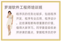程序员的任务比较多,包括程序开发、程序专业应用、程序设计。这些课程都有很重要的价值,值得大家学习。同学要是吸收老师讲课的重点,掌握程序员的学习方法,成绩一般都很不错。大家在应聘之前要积累非常多的知识,同时也要掌握基本的程序应用方法。然后制定较详细的程序设计规划,熟练软件的开发测试以及安装调试等过程。这时可报名罗湖程序员培训学校,也许拥有更多技术竞争的优势,赶快找到好工作。程序员培训班哪些好,程序员培训班的教学质量不错,能力很强,在挑选的时候要考虑综合因素,包括报名的费用、专业辅导课程内容、老师的能力等等。在学习时应该理论和实践紧密联系起来,不要只关注某个角度的内容。程序员培训内容多不,程序员培训机构的辅导内容非常丰富,课程难度不高,每个阶段都是有条不紊,为大家讲解重要的技能、专业应用方向、发展趋势等等内容,假如学员连基本的学习方向都没有,不懂得书本上的理论知识,也没有经过强化应用训练,可以报名一些重要的辅导机构,由程序员培训机构的老师来全程帮忙。