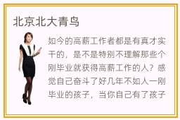 如今的高薪工作者都是有真才实干的,是不是特别不理解那些个刚毕业就获得高薪工作的人?感觉自己奋斗了好几年不如人一刚毕业的孩子,当你自己有了孩子,孩子大了还要让他走你的老路吗?一辈子就这么碌碌无为的?还是辛辛苦苦一年到头攒不到一分钱?你肯定是不愿意的,都说望子成龙望女成凤,就算孩子不愿意学习也不能让他一事无成吧,所以如果你的孩子或者你自己正在纠结上哪所学校好就去北京北大青鸟吧,那里教学水平很高,在北京可是相当火的一所学校,占地面积很大学习环境很不错,老师们也都很专业好多学生都挤破头了想去呢,而且很多毕业生都找到一份很好的工作,好多企业老板都争着要,现今社会最缺的就是人才,而北京北大青鸟就是专门培养人才的地方,去看看吧说不定你会爱上那个地方哦!