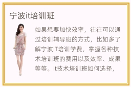 如果想要加快效率,往往可以通过培训辅导班的方式,比如多了解宁波IT培训学费,掌握各种技术培训班的费用以及效率、成果等等。it技术培训班如何选择,一般要考虑的是老师的水平,培训的质量,培训效果等等。宁波it培训机构有:宁波北大青鸟,中软卓越,达内教育等。而宁波it培训机构就非常的专业而且有经验,宁波it培训机构虽然挺多的但是他们都是为了培养人才而建立,来宁波学习it技术大可以当心。都不是的,是因为自己没有一技之长,没有可以另老板刮目想看的地方,如果你现在正在选择学校读书那么正好,给你推荐IT专业,如果你是上班族那也可以提升自己。那么宁波it培训班有哪些。IT行业本来就不会很难,但是内容实在太多,如果学员没有掌握这些基础内容,那么可能就很难把握IT专业的应用,可能在未来学习和就业的过程中,遇到很多瓶颈和障碍。