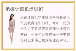 承德计算机学校在国内有着高人气的教育培训口碑,青年一代的学生为了寻求更高条理的计算机教育,一般也会去选择一些电脑培训班来停止更深条理的学习。承德电脑学校招生简章吸收人嘛。承德计算机培训机构聘请的老师一般而言都是拥有高资历的教育人才或者说拥有高水平的计算机人才,再这样的培训机构中学习,想必一定可以收获到不少新的知识。一所培训机构靠不靠谱是需要学生们停止多方面领会的,而这所专业计算机培训学校的口碑好欠好凡是是决议学生们有没有领会下去乐趣的重要前提。承德计算机学校学费的办学特色怎么样呢。因为承德计算机培训班里的教学设施非常的好,在这里可以积累非常多的实际操作经验。很多在承德计算机培训学校学习过的学生们都说承德计算机培训学校确实很不错。