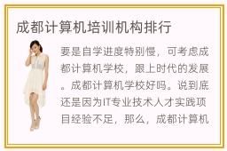 要是自学进度特别慢,可考虑成都计算机学校,跟上时代的发展。成都计算机学校好吗。说到底还是因为IT专业技术人才实践项目经验不足,那么,成都计算机培训学校会不会注重对于学员们的专业技术培养呢。成都电脑专业培训方向存在不肯定性身分,好比本年是风行Java剧本程序编写,那末培训重点就会放在Java设计上,诸如斯类。由此,外来人员也是不断向成都等发达城市前进。想要学习计算机相干专业技术我想人人无妨可以去成都计算机学校尝尝看呢,信任必然不会令人人掉望的。但学生自己在报名后,也要明确自己的缺点,然后及时进行弥补,才能拥有更多专业优势。成都这座城市,在人们的印象中,都是一个温柔似水的城市,落雨的天气、氤氲的水气、温婉的女子还有秀美的风景都是令人神往之地,把成都在旅游文化的道路上越推越远。