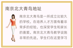 南京北大青鸟是一所成立比较久的学校。在培养人才方面有着非常多的经验。也深受学生和家长的喜爱。南京北大青鸟教学设施非常的先进。学生们在这里学习,可以得到独特的体验。也能更好的积累实际操作经验。想要知道南京北大青鸟地址是什么的话?可以问相关的在校老师,他们会进行详细的回答。南京北大青鸟,是每个学生都值得选择的一个学校。在南京北大青鸟读书的话,并不会令人后悔。很多在南京北大青鸟学习过的学生们,都说,南京北大青鸟很不错。因为他们在南京,北大青鸟毕业后,很轻松的就找到了,自己喜欢的工作。现在他们在自己的工作岗位,非常的顺利。他们也很感谢南京北大青鸟。不曾后悔自己当初选择哪间北大青鸟学习。所以,想要学习专业知识,还是得到南京北大青鸟学习。